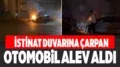 Karabük'te istinat duvarına çarpan otomobilde çıkan yangın, itfaiye ekiplerince söndürüldü.