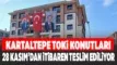 TOKİ’den daha önce yapılan açıklamada, “Kartaltepe Sosyal Konut Projemizde çalışmalar tamamlanmıştır. 28 Kasım 2025 tarihi itibarıyla konutlarımız hak sahiplerine teslim edilmeye başlanacaktır. Vatandaşlarımıza yeni yuvalarında huzurlu, sağlıklı ve mutlu bir yaşam diliyoruz.” ifadelerine yer verilmişti.
