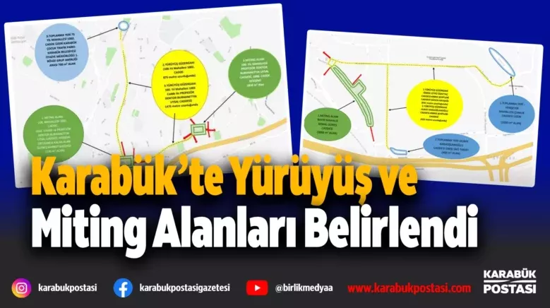 Karabük’te 2026 yılına ilişkin toplantı ve gösteri yürüyüşü yapılabilecek alanlar ile yürüyüş güzergahları Valilik tarafından belirlendi. Yapılan düzenlemeyle kent genelinde ana ve alternatif olmak üzere iki farklı bölgede toplanma alanları, yürüyüş güzergahları ve miting alanları ilan edildi.
