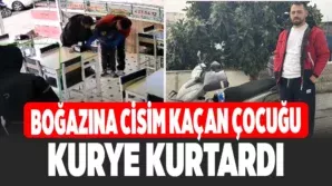 Kurye Afacan, "Çocuk gelirken zıplaya zıplaya geliyordu. Çocuğun boğazında bir şey kaldığını fark ettim. Babası sırtına vurarak kurtarmaya çalıştı ama bu sefer de nefes borusuna gitti sanırım. Bende heimlich manevrası yaptım. Çocuk rahat bir nefes aldı. O ara da ambulansı aradım. Geldiler ve çocuğu aldılar. Sağlık durumu iyiydi" dedi.