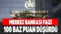 Ayrıca gecelik borç verme faizi yüzde 43,5’ten 42,5’e, borçlanma faizi ise yüzde 39’dan 38’e indirildi.