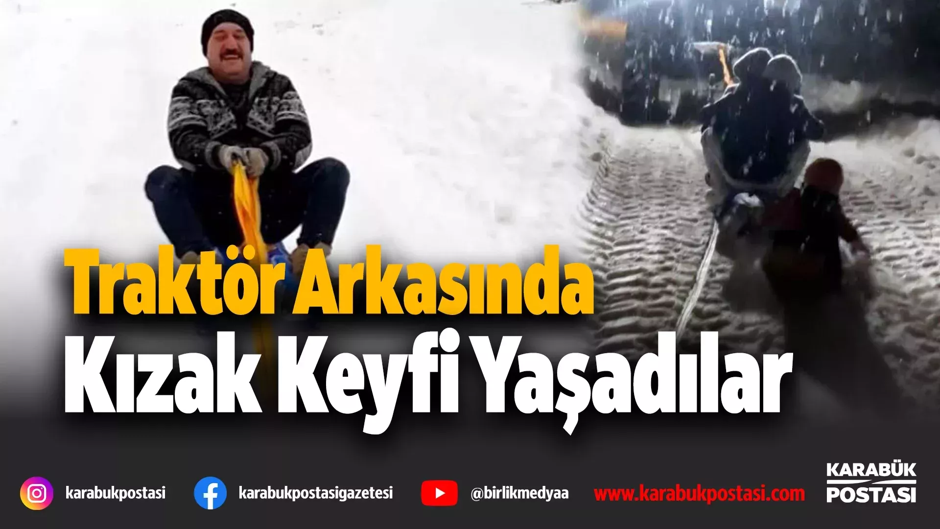 Karabük’te traktöre bağlanan kızaklarla kayak yaptılar